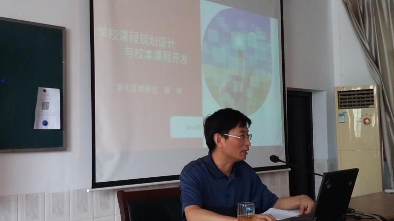 薛主任从关于课程的几个基本理论问题开始,向我们详细讲解了什么是课程,课程的分类和各类课程的特点,什么是学校课程体系。再进行课程开发实践的指导,结合一些学校的校本课程开发方案以及他自己以往的校本教学案例,为我校校本课程的开发和实践起到了很好的借鉴作用。