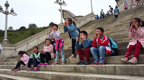 阴沉沉的天挡不住孩子们迫切走进大自然的兴奋之情。一路欢歌笑语,我们来到期待已久的“嬉戏谷”。阿狸表情灯随风摇曳,各种各样的动漫人物让孩子们目不暇接,惊叹连连。他们走进摩尔庄园,寻找童年的宝藏;来到洛克王国,点亮神秘魔法。在幻想森林中探险,钻钻弯弯曲曲的迷宫,坐坐摇摇晃晃的摩天轮。与可爱的囧囧狗握握手,合张影。沿着嬉戏天路,爬上365级阶梯,俯瞰全员美景,远眺太湖风光。
