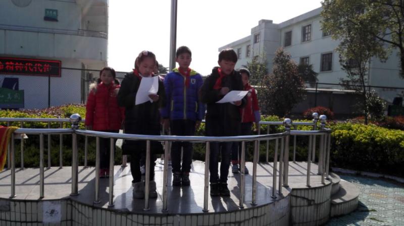 升旗过后,贾诗怡同学作了国旗下讲话,希望同学们作为学生,要珍惜美好时光,努力陶冶情操,继承先烈的遗志,把老一辈的无产阶级革命家开创的事业,薪火相传,不断发扬光大!学习先烈们的爱国心、进取心、责任心,作为祖国未来的花朵,同学们要继承发扬革命传统,从身边的点滴做起,让革命精神传统的火炬一代一代的传下去!