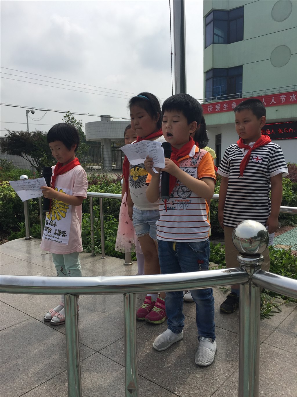 6月13日,万绥小学第十七周升旗仪式由一年级中队主持。本周的主题是“帮助他人,快乐自己!”主持人先介绍了四位护旗手的主要事迹,然后由邱佳豪小朋友作主题讲话。他用一个“盲人打灯”的浅显故事,告诉大家帮助别人,其实就是帮助自己,让自己快乐的的事情。
