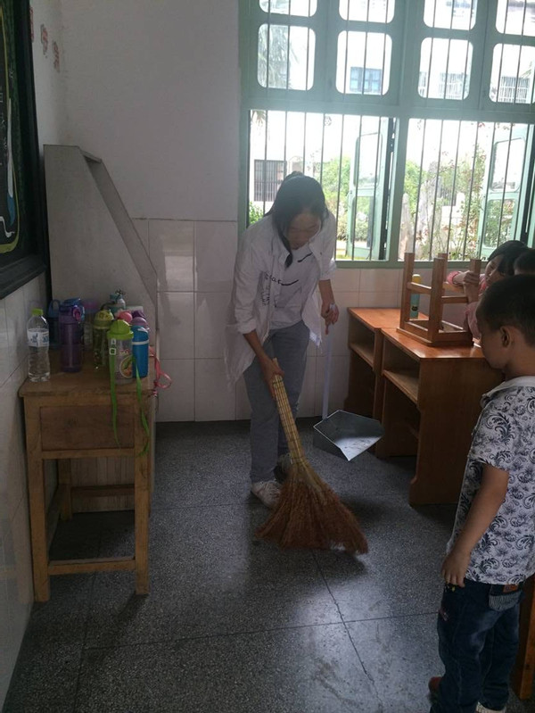 家务农活课从第二节课开始,小朋友们表现出了很高的兴致。首先让我们看看一年级小朋友在做什么?班主任组织大家聆听《劳动人民最光荣》,原来在教育每个小朋友要热爱劳动,让小朋友们懂得做值日应尽心尽力,从小培养他们的责任感。活动中还进行了集体讨论,“看看我们的教室环境怎么样?你有什么感受呢?并且说一说具体应该如何做值日呢?比如扫地、擦玻璃、拖地都应该怎样做呢?”小朋友们都激烈的讨论着。随后班主任手把手教大家如何扫地,示范了一组。之后的教室请小朋友自己来打扫,大家都学的像模像样的。最后班主任引导小朋友们要热爱集体,热爱班级的卫生,不随手丢垃圾,真是一群棒棒的好孩子。希望大家从小热爱劳动,做一个爱劳动的好孩子。随后我们来到二年级。咦?他们在热火朝天的做什么呢?原来在用树叶做画!每位小朋友把想象插上翅膀,根据每片叶子的特点制作不同的画,真美!有的做出了美丽的海洋世界、有的做出了美妙的森林,想象力真是丰富。随后班主任引导孩子们从观察研究叶子到留意身边的其他事物,学会做一个处处留心的好孩子。