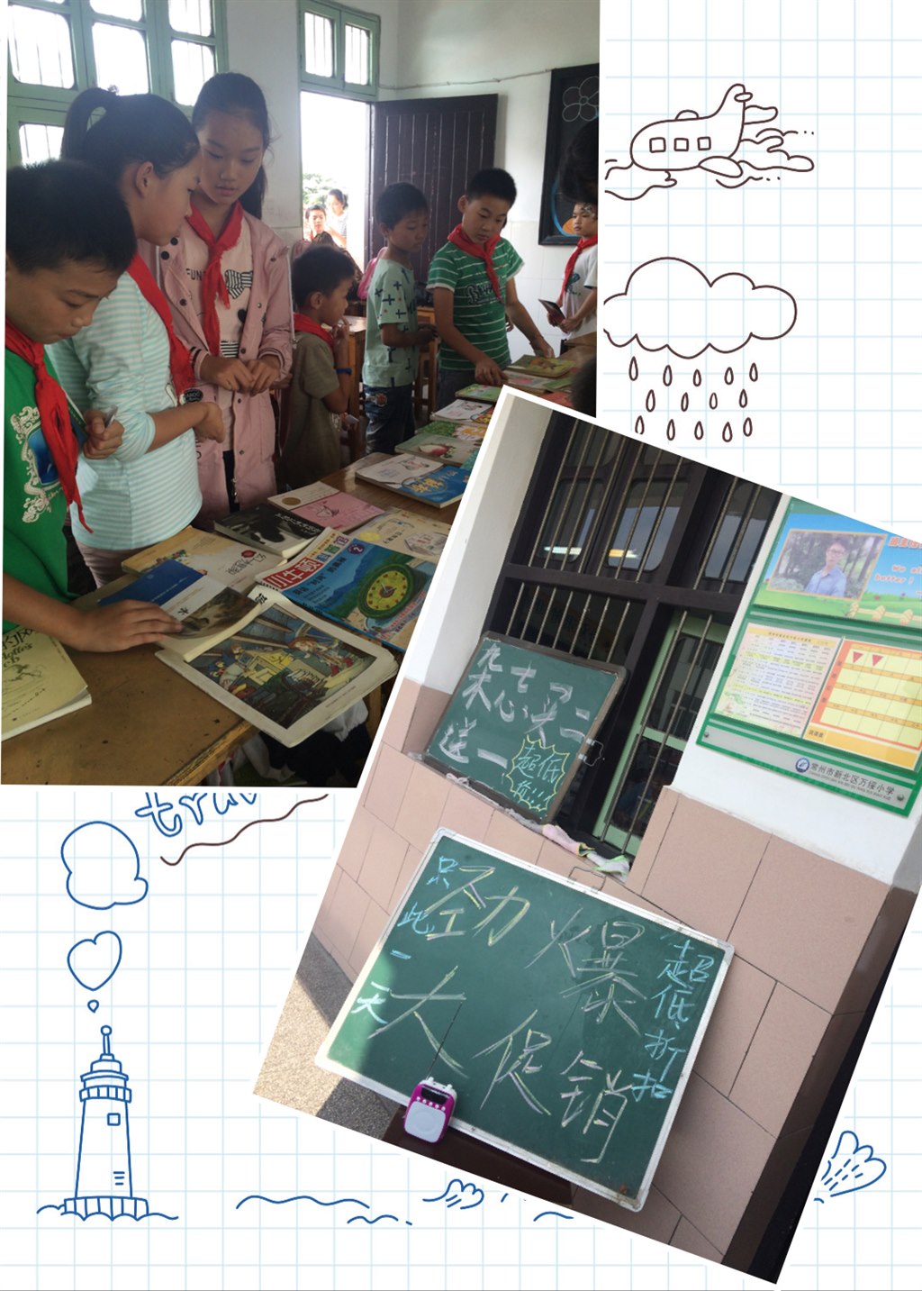 这次跳蚤书市场采用走班的形式举行。班主任们发动学生拿出几本对自己已经没有使用价值,但曾经对自己产生过帮助的书与同伴进行交流,实现资源共享。可以免费赠送、以书换书、友情出售。同学们还可以根据自己班级设计海报,为自己的书作宣传。今天阳光明媚,正如天气一样,每个同学都十分开心,手里拿着买书的钱跑到各个班级去挑选自己喜欢对自己有帮助的图书。二年级小朋友虽小,卖起东西来十分厉害,不一会儿就把书畅销出去了。高年级的图书较多,种类也十分的丰富,有作文方面的书、有古今中外的历史书还有十分有趣的漫画等等。三年级的同学别出心裁,拿出小黑板写上大大的字“买一本书送一本杂志”的标语,吸引了很多同学,真是小小年纪就有商业头脑呢!