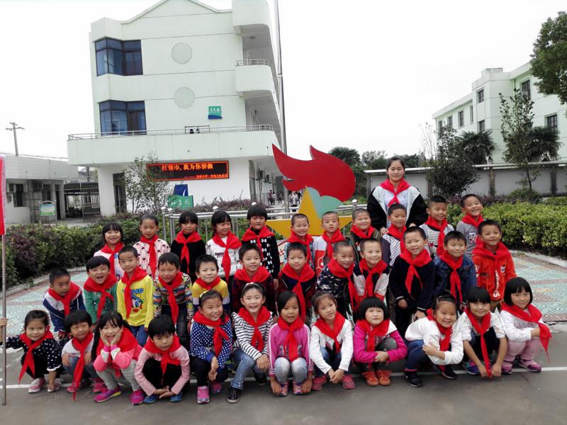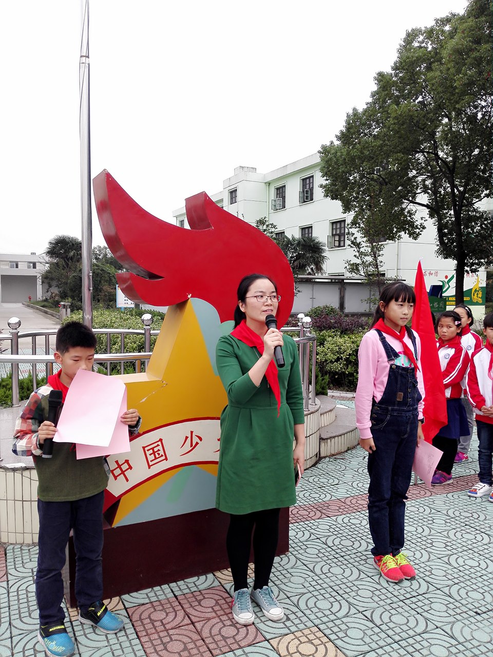 伴随着《中国少年先锋队队歌》的激昂旋律,一年级的小朋友们排着整齐的队伍雄赳赳气昂昂地入场了。虽然天空仍是阴沉沉的,但小朋友们的笑容如阳光般灿烂。大队辅导员郑黎燕老师宣布了新队员名单,高年级同学代表老队员给新队员佩戴红领巾,互行队礼。69名新队员在大队长张澄杨的带领下庄严宣誓:“……好好学习,好好工作,好好劳动,……为共产主义事业,贡献出一切力量!”稚嫩的童声响彻云霄,骄傲和自豪写在每个孩子的脸上。蒋丽清校长给中队授中队旗,为辅导员颁发聘书。