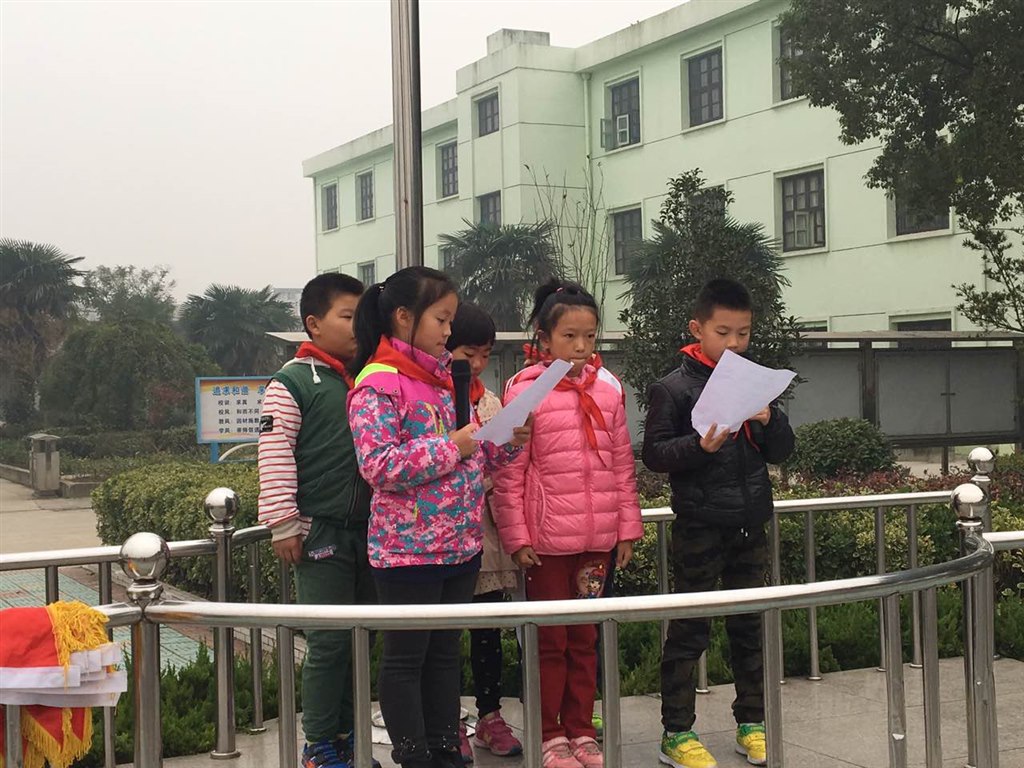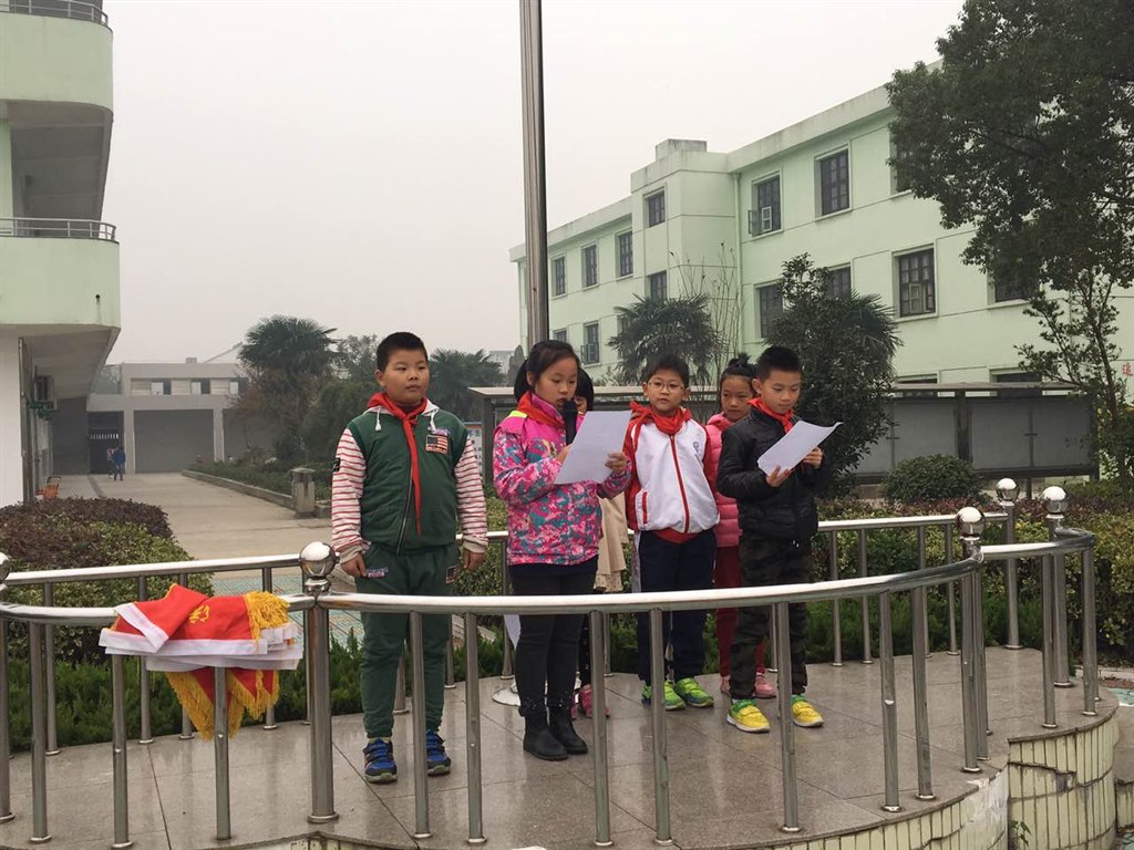 本次升旗仪式的护旗手是潘茜、朱骏毅、郑钱、符馨怡。这些同学都能自觉学习,懂得了学习是自己的事情,坚定了心中的目标,并为之努力奋斗,不断前进,是我们大家学习的榜样!