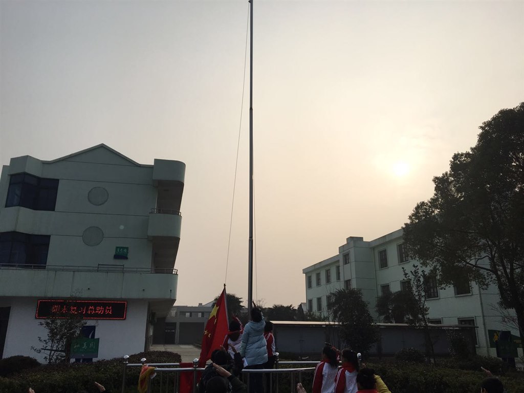 1月9日上午一节课后,万绥小学举行了“期末复习总动员”主题升旗仪式。