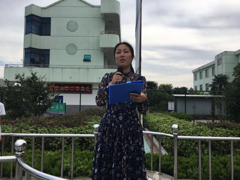 9月1日上午课间操期间,学生们迅速地走出教室,排好队,整齐地来到篮球场,在缓缓响起的音乐声中,万绥小学的开学典礼开始了。