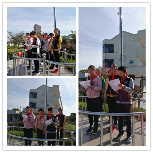 六(2)中队又名“菊花中队”,选用菊花作为我们特色中队名称,是希望每位学生能像菊花一样,不畏困难,在学习中做学习的主人。六(2)中队的口号是:菊傲风霜,人人自强!本次升旗仪式的四位护旗手——巢婉婷、池凯铭、罗静、张雅,他们都是六(2)班中队中认真、负责,主动的同学。