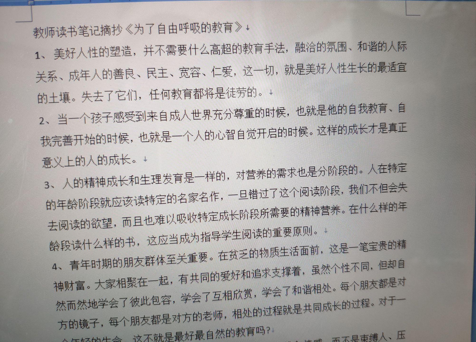 读了《为了自由呼吸的教育》书,听名字就让人感觉到了畅快,教育确实需要点“自由”了。细细地品读了李希贵老师《为了自由呼吸的教育》一书,就被它深深的吸引了。我经常会思考一些关于教育的问题,韩愈说的“传道、授业、解惑也”,常常在耳响起,可时代发展到今日,教师不能只是“教书匠”,更应是心灵的“引路人”,“授人以鱼,更应授人以渔”,诸如此类至理名言,更是随处可见,但是,此刻的学生到底要的是怎样的教育呢?我也一向在思索着。李希贵老师的《为了自由呼吸的教育》一书,用十分平实的语言向我们讲述了一个一个他以前实践过、经历过的小故事。每一个故事都能读出他对教育的独特感悟和思考。书中,李希贵老师一再强调,“教育其实很简单:一腔真爱,一份宽容,如此而已。”“教育本来挺简单,只是我们人为地把它搞复杂了。把孩子们当作活生生的人来看待,让校园里充满民主、平等,让老师、学生在校园里自由呼吸”,从而“到达心灵之花自由开放的生命田园”。“表扬学生要铺张,批评学生要吝啬。”多么朴实的语言,将教育这个让人觉得漫无边际的概念,用寥寥数言解释的淋漓尽致,我不由的为李老师的观点鼓掌。是啊,教育确实很简单,一腔真爱,一份宽容。反思这么多年来的教育历程,重新审视教育,我感觉教育就应像农民种庄稼一样,春天播下一粒种子,缺少水份为它浇水长满杂草为它除草,遭遇病虫害为它酒药,缺少营养为它施肥,让它能在一个健康的环境下一天一天长大,直到秋天收获果实,这期间我们不能拔苗助长。而我们在实施教育的时候,总是期望学生按照自我期望的方向生长,更期望他们在最短的时光内成熟,不断地把自我的养分无私地输送给他们,期望他们全部吸收并强壮起来。但是肥胖并不等于强壮,孩子们不是你给什么就吸收什么,他们总是挑自我喜爱的零食去吃,他们才不管有没有营养,营养均衡,协调搭配的问题,只要口感好就行。书中提出,教育的本质是解放人--包括人的智力和心灵、思维和情感,而不是東缚人,压抑人,限制人我们没有挖掘学生的潜力,反而尽力把他们塑造成另一个我们。我们要所有的孩子都朝着同一个目标发展,把本来一个个鲜活的个体雕刻成千人面的丧失个性的木偶,把本来丰富多彩的世界変成一个个塑像。书中说教育无痕,有效的教育是把教育目的隐藏个的教育,是不动声色的教育。完美人性的塑造,并不需要什么高超的教育手的塑造,并不需要什么高超的教育手法,融洽的氛围,和谐的人际关系,成年人的善良、民主、宽容、仁爱,这切,就是完美人性生长的最适宜的土壤,失去了它们,任何教育都将是徒劳的。当一个孩子感受到来自成人世界充分尊重的时候,也就是他的自我教育、自我完善开始的时候,也就是人的心智自觉开启的时候。一个孩子对一门课程的喜爱,有时并不是基于课程本身的什么价值,而很可能是些常常被我们忽略的十分微小的细节,当孩子从细微之处感受到了老师真诚的爱,当孩子同样爱上了自我的老师,也就是孩子热爱这门学科,热爱学习的开始。放开孩子的手脚吧,让他们自我走路,也许他们能够更快地奔跑起来!让我们走出为了教育而教育的误区。其实很简单,一腔真爱,一份宽容。把简单的事情天天做好,就是不简单。