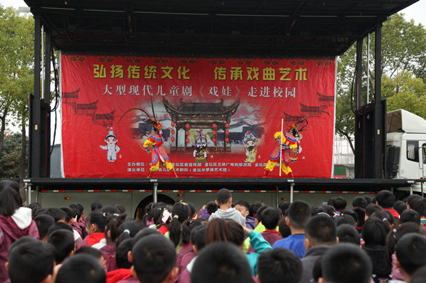 戏曲,是中国传统文化的瑰宝,是无形的历史文化遗产。为提高学生的艺术品味和人文素养,弘扬中华优秀传统文化,推动戏曲艺术传承发展,2022年11月14日上午,学校邀请江苏省儿童艺术剧院(金坛华罗庚艺术团)走进校园,为学生献上精彩的大型儿童情景剧《戏娃》。