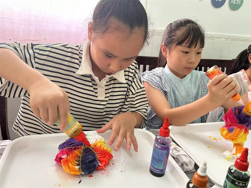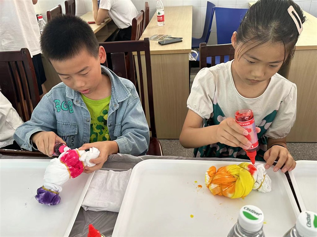 扎染古称“扎缬”“绞缬”,俗称“印花布”或“礼花布”。扎染在我国已有数千年的历史,有着丰富的文化内涵,是我国历史悠久的纺织染色工艺之一,被列入国家非物质文化遗产保护名录。为弘扬和体验这项古老又神奇的中国民间传统染色工艺,7月6日下午,万绥小学联合万绥社区开展了一堂“传承非遗文化 邂逅趣味扎染”扎染体验活动。