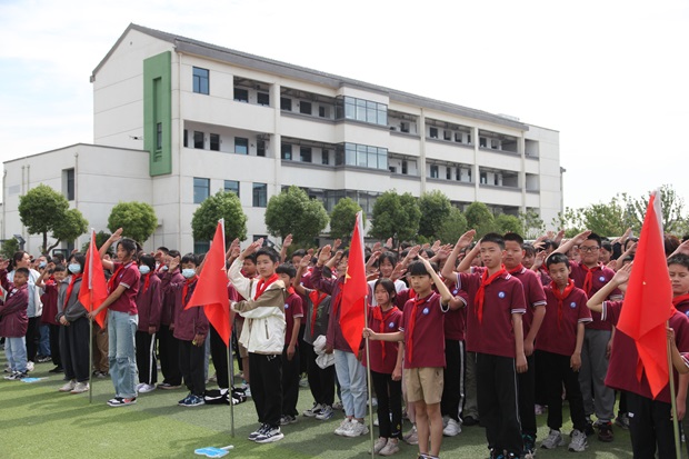 最后,入队仪式在孩子们响亮的呼号声中落下了帷幕。伴随着激昂的退旗曲,新生入队仪式画上了圆满的句号。