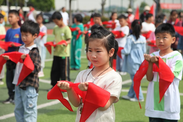 5月29日上午,新北区万绥小学举行了“红领巾爱祖国”为主题的入队仪式。火红的队旗高高飘扬,小队员在少先队的带领下,鲜艳的红领巾系满理想,成为一名光荣的少先队员。