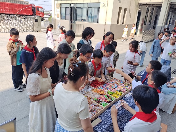 孩子们穿梭于各个教室,既要动手完成妙趣横生的非遗小游戏,又要动脑回答精心设计的知识问题。答对题目、完成挑战,一枚枚象征智慧与协作的贴纸便跃然集章卡上,成为兑换惊喜的“文化勋章”。寓教于乐的模式,极大地调动了孩子们的参与热情,加深了孩子们对家乡非遗的了解与认同。